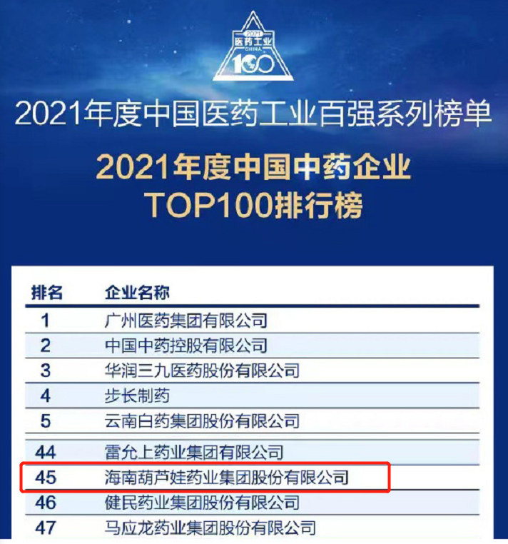 万众瞩目的2021年度中国医药工业百强系列榜单在会上盛大发布,太阳成集团tyc33455药业集团百尺竿头更进一步,位列中国中药企业TOP100排行榜第45位,连续第三年入围中国中药企业TOP100百强榜。